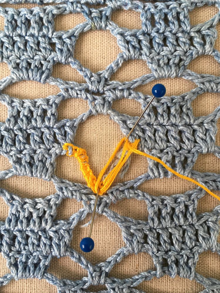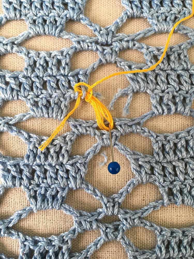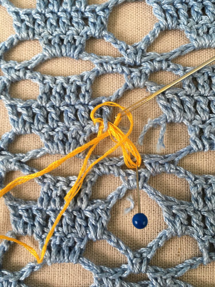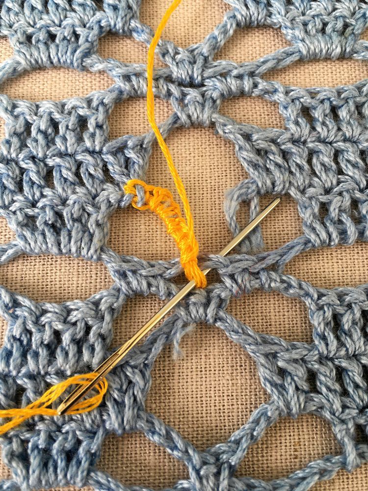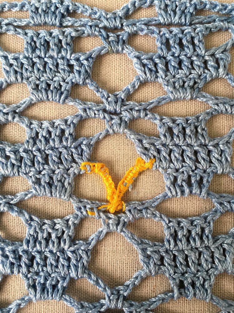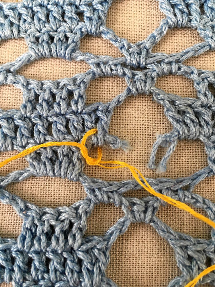 Välj gärna en färg på garnet som syns lite, som en respektfull blinkning till den som en gång skapade själva mästerverket.