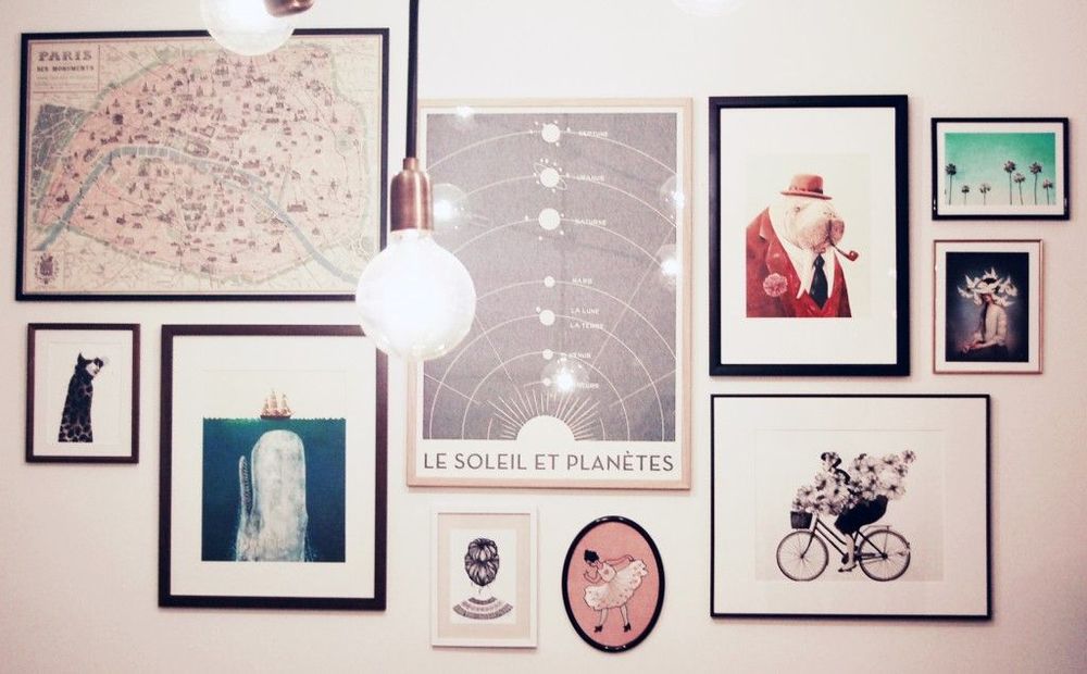 Du måste först ha samlat på dig fina tavlor eller ramat in de motiv du vill ha. Likadana ramar ger ett lugnare intryck, men det kan också vara charmigt med udda ramar. Fundera över vilken känsla du vill förmedla och hitta ramar och motiv som passar. Var flexibel med vilka tavlor som ska vara med, ta bort eller lägg till fler om det behövs.