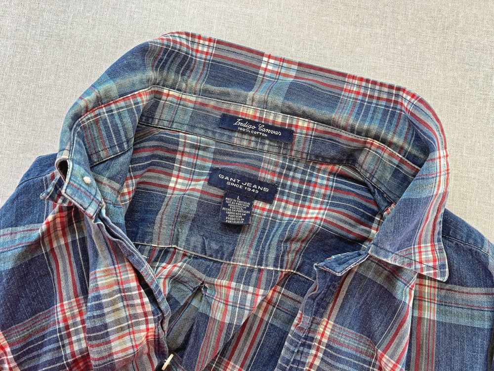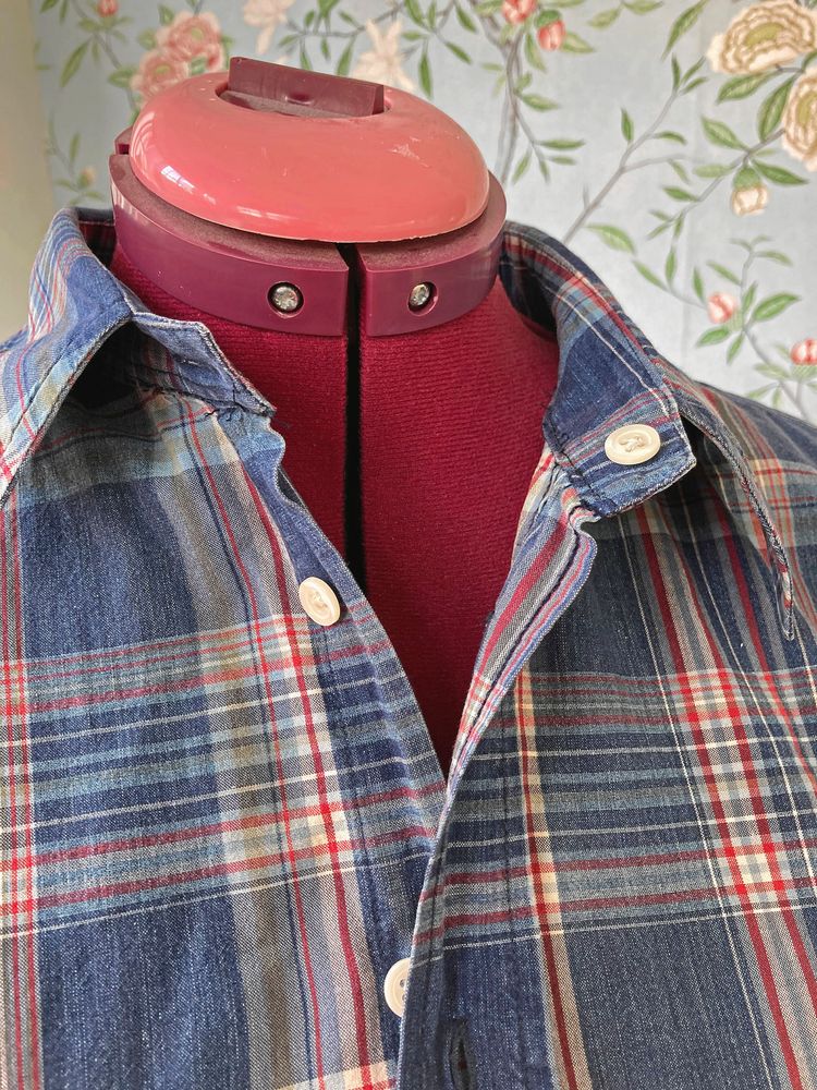 Skjortkragen är en fiffig konstruktion. Den är precis likadan på baksidan som fram så du kan vända den och gömma det slitna på bakom nacken.