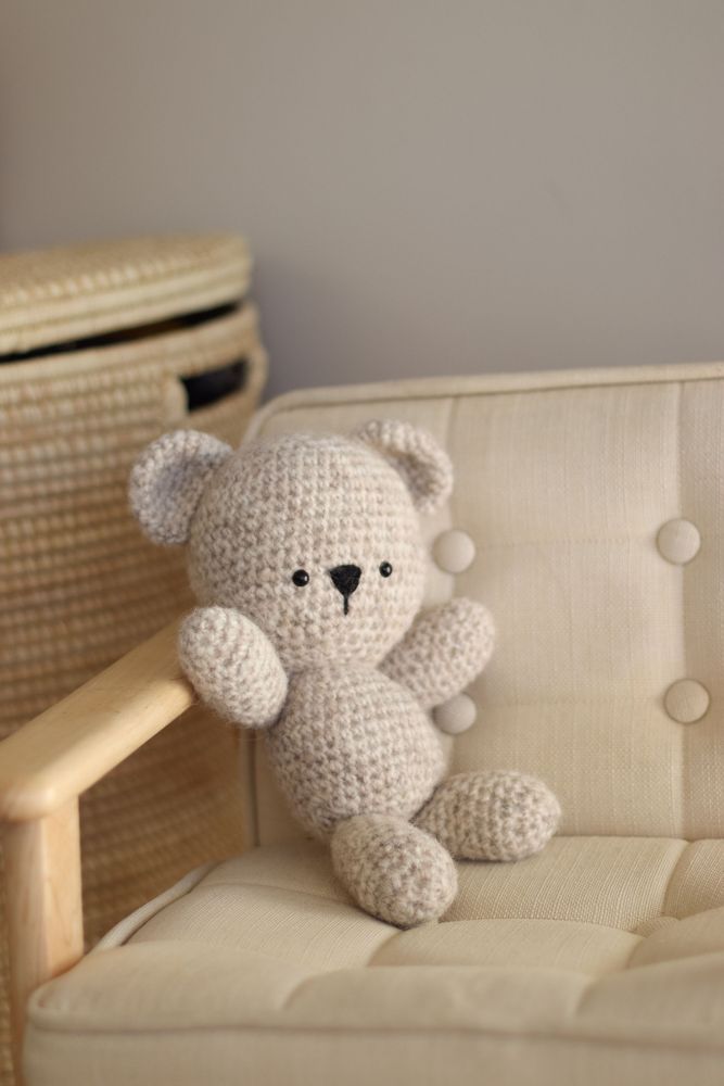 Nalle är en riktig mjukis, virkad i tunn merinoull.