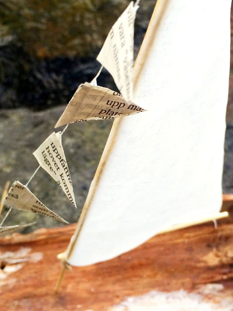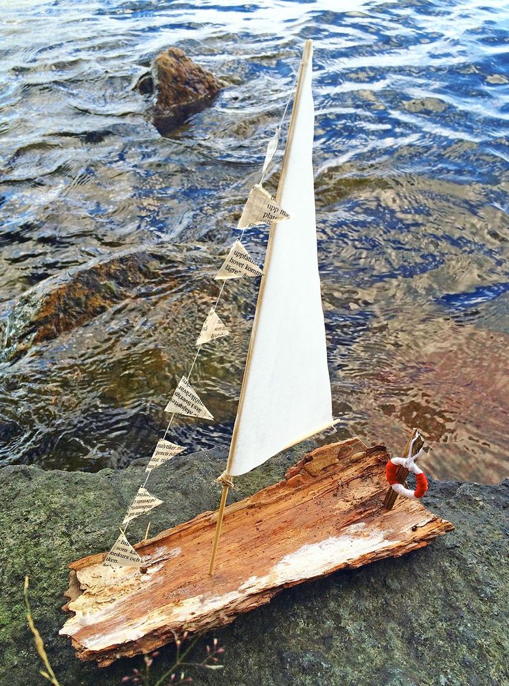 Leta reda på en bit bark i skogen, dock får den inte plockas från ett träd. Viktigt att veta, läs här: Bli du en fena på allemansrätten – det här behöver du veta Man kan även tälja till sin båt om man vill. Sedan är det bara att låta fantasin flöda och bygga mast, segel, livboj och allt som hör hemma på en båt.