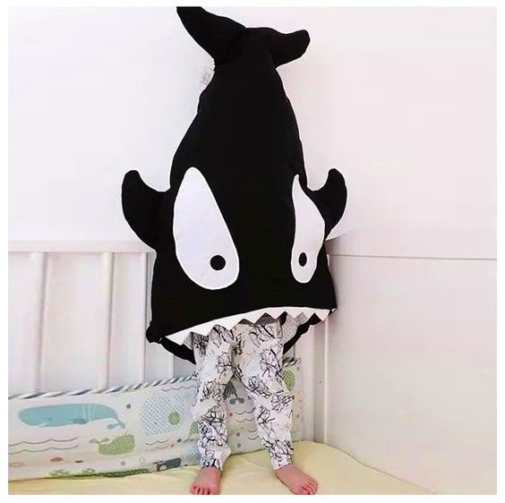 6. Lägg bak- och framstycke räta mot räta och sy ihop. Vänd härligheten rätt. För att få styr på fenan kan du sy några raksömmar genom alla lagren. Det stagar upp.