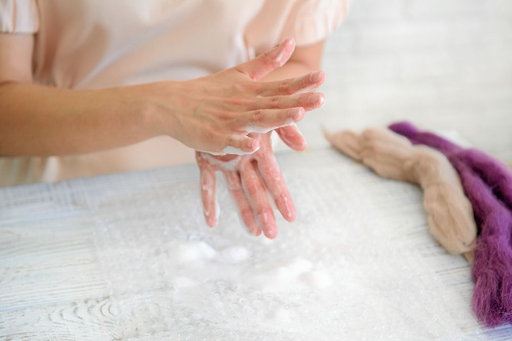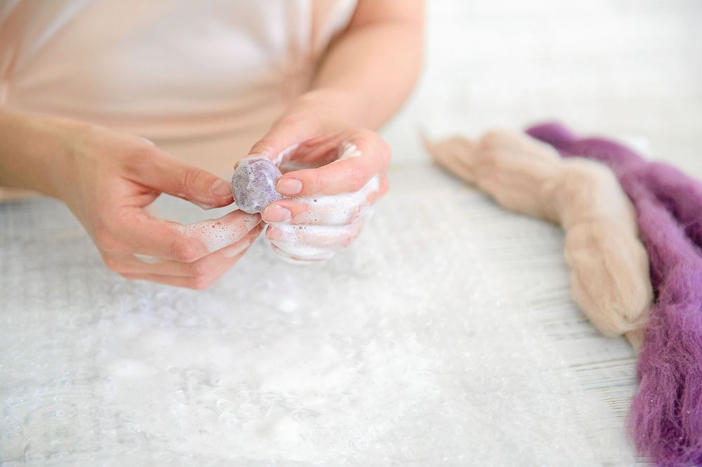 2. Doppa bollen i varmt såpvatten och börja rulla, mjukt först. Tryck inte ihop så att vattnet rinner ut.