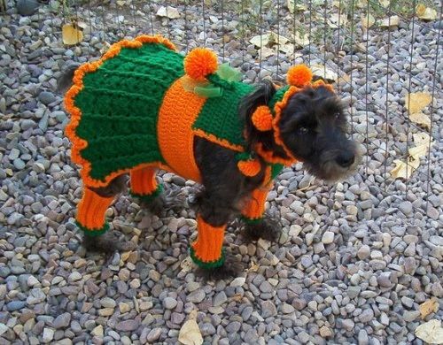 Färgvalet är subtilt, detaljerna utsökta. Virkad festblåsa för hunden som verkligen tänker "mode".