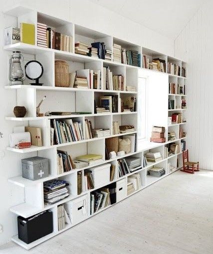 Fin hylllösning för en vägg med fönster. Rymmer massor! Källa