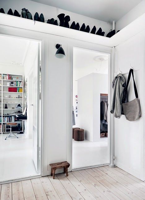 Lite för många skor? Upp med dem under taker så håller du golvytan fri. Källa