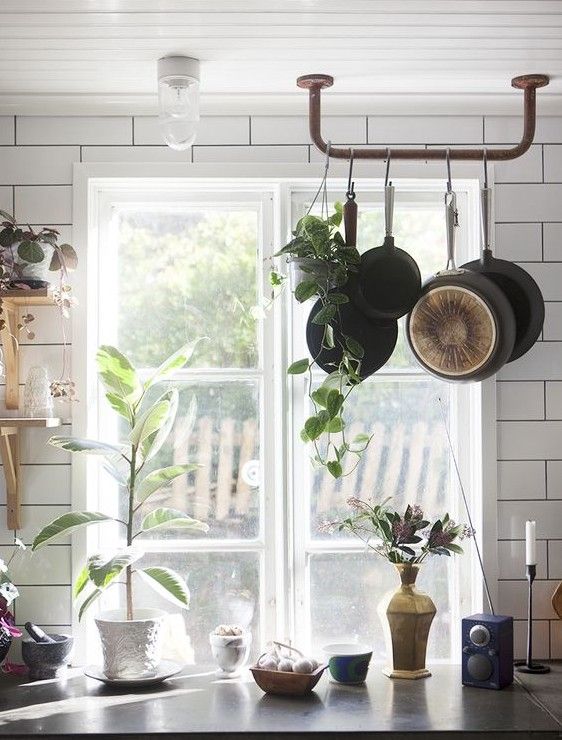 På bloggen Amelies hus hittade vi den här smarta lösningen med en hängare i taket för stekpannor och kastruller.
