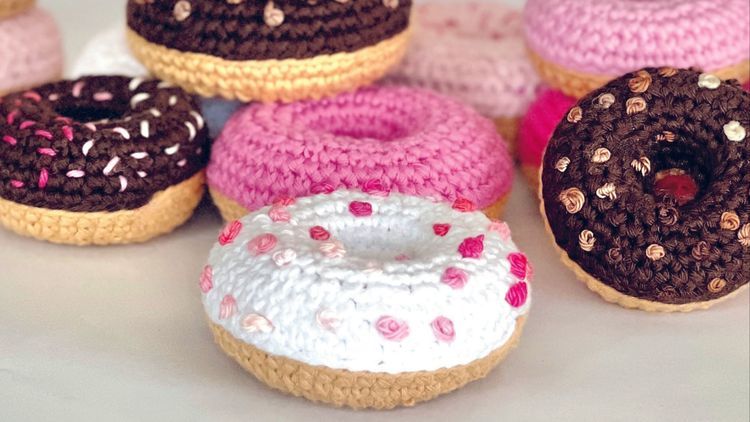 Duka upp med nyvirkat. Här bjuder mönsterdesignern Camilla Sandsjö på munkar från sin bok med fikabröd av garn.