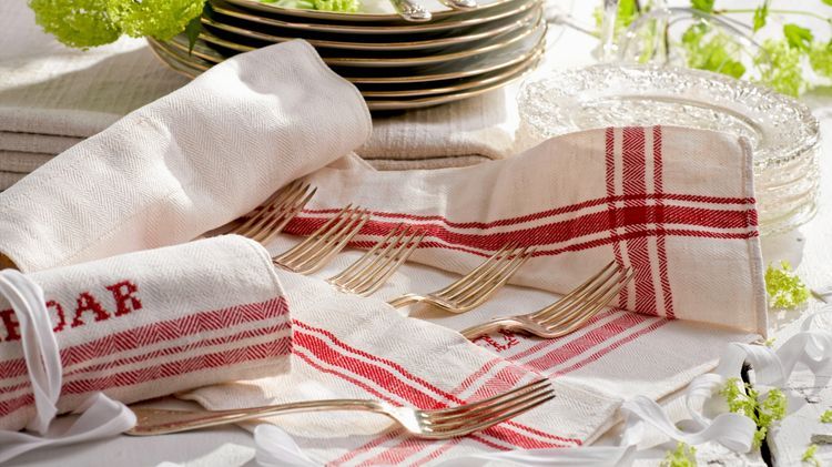 De charmiga fodralen är det en ren fröjd att förvara finaste besticken i. Sy dem av vanliga kökshanddukar med klassiska ränder och rutor.