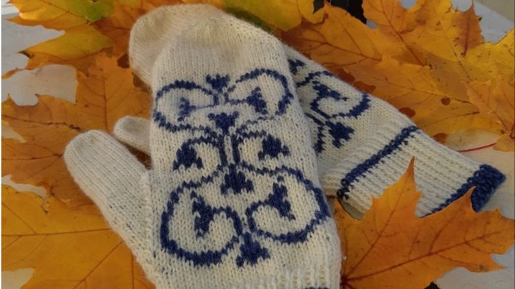 Krumelurerna på en kyrkogrind blev en vante. Carina J Rosén skapade med inspiration från hemorten Säby Kyrkby.