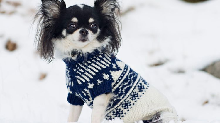 Skäm bort din hund med en supersöt mönsterstickad tröja i norsk stil. Mönstret passar en liten eller mellanstor vovve.
