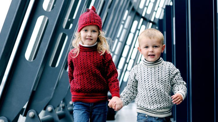 Visst känns tröjan igen. Det klassiska mönstret med streck och fyrkanter blir aldrig omodernt. Sticka och välj storlekar som passar ända från barnvagn till småskola.