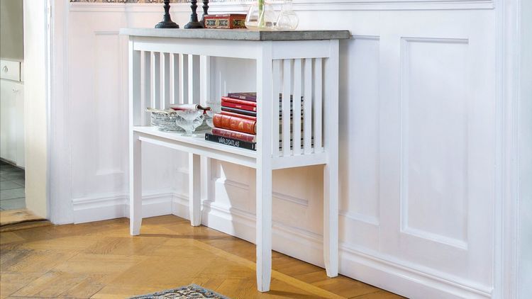 Här är beskrivningen på hur du gör ett stiligt sidobord med oljad betongskiva.
