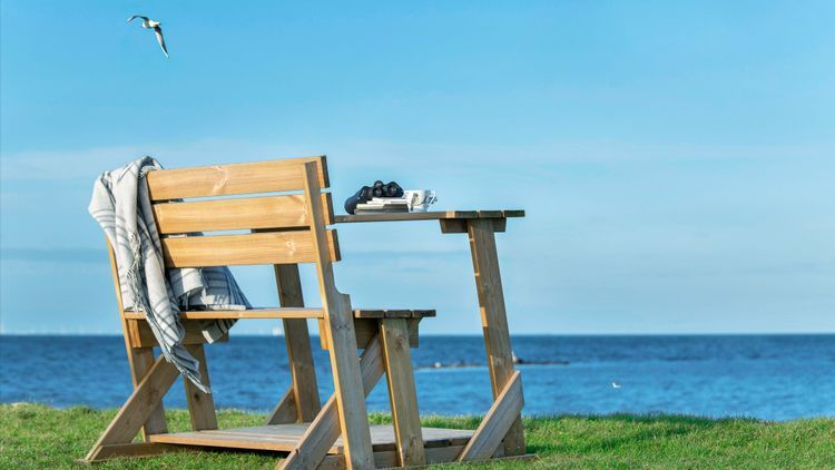 Bänken har dessutom ett inbyggt bord! Perfekt för din favoritplats vid havet eller i trädgården.