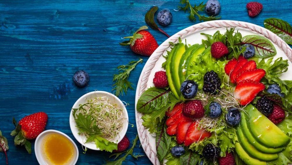 Ät så mycket ”rena”, oraffinerade livsmedel du kan. Frukt och grönt av alla slag är självklara val. Fibrer är bra eftersom det hjälper matsmältningen, vilken ofta försämras i kombination med stress.