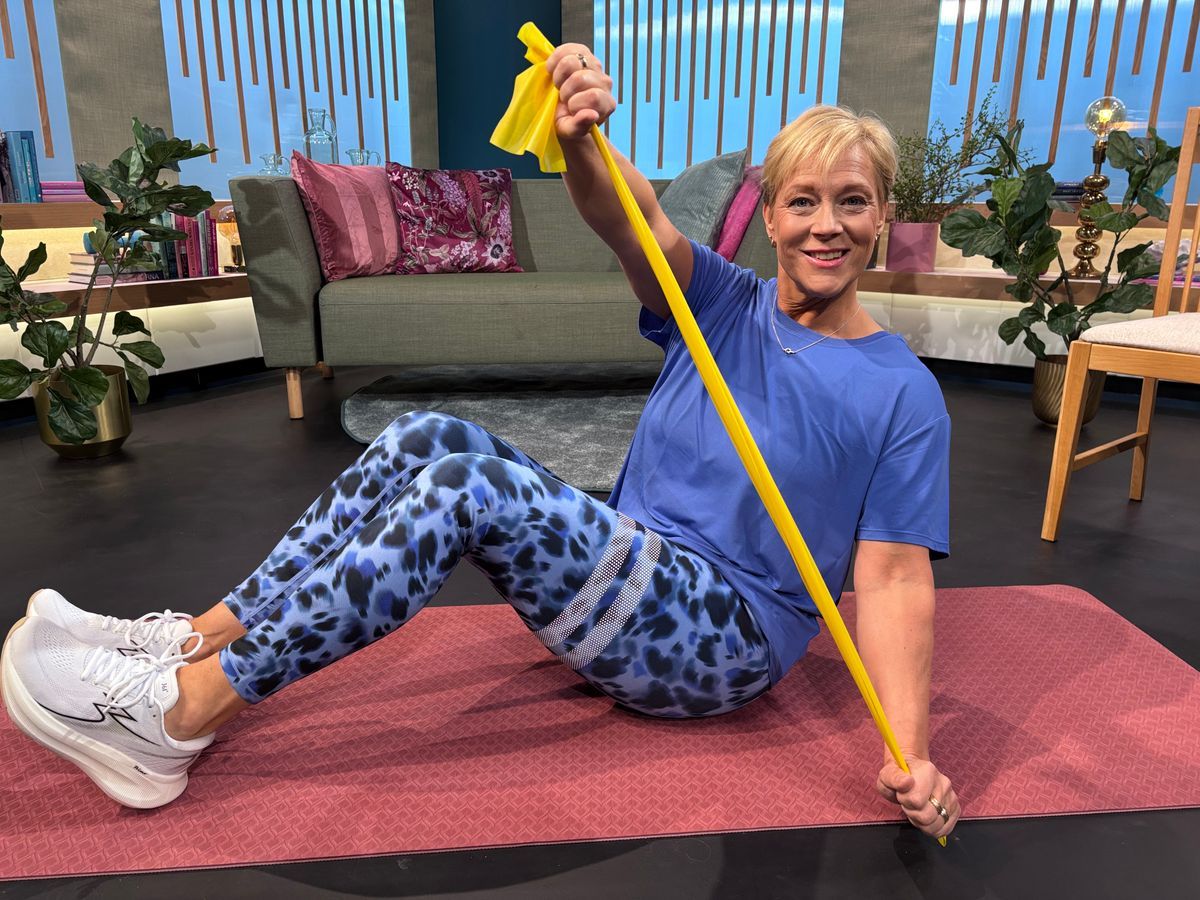 – Jag älskar att träna i grupp, man får energi av varandra. Själv är jag jättedålig på hemmaträning! Så fort jag lägger mig på golvet ser jag dammet under soffan eller att någon blomma måste vattnas ...