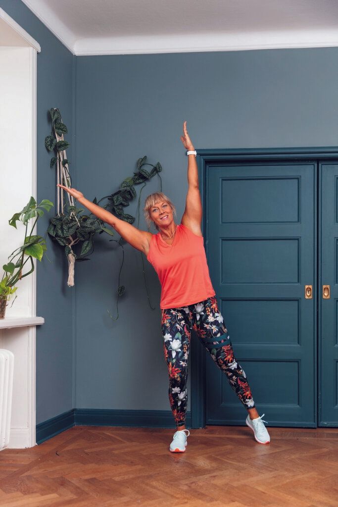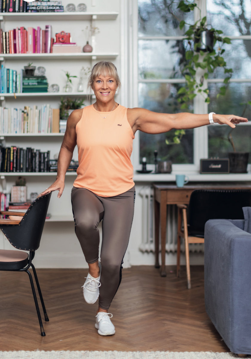 Tips: Vill du ha en tuffare övning? Ställ dig på ett ben.