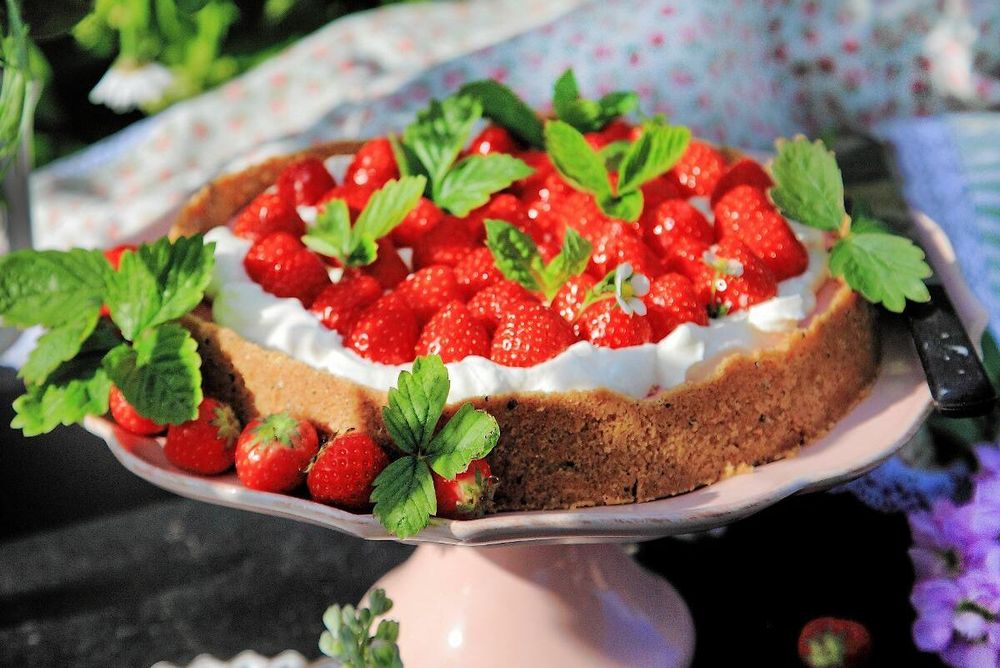 Det är snabbt gjort att bre över vispad grädde och lägga på jordgubbar vid servering av tårtan. Mumsig och smart!