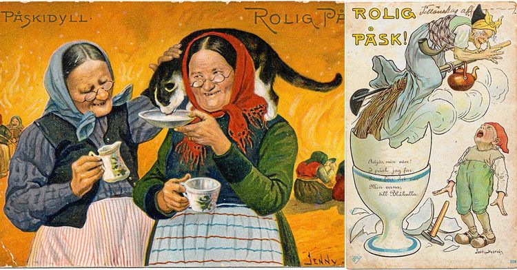 Förr var påskkort lika vanliga som julkort – och skapades av skickliga konstnärer som Jenny Nyström! Spana in de här magnifika guldkornen från en svunnen tid.
