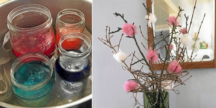 Superlätt och snällt mot naturen. Färga ull med karamellfärg till påskriset.