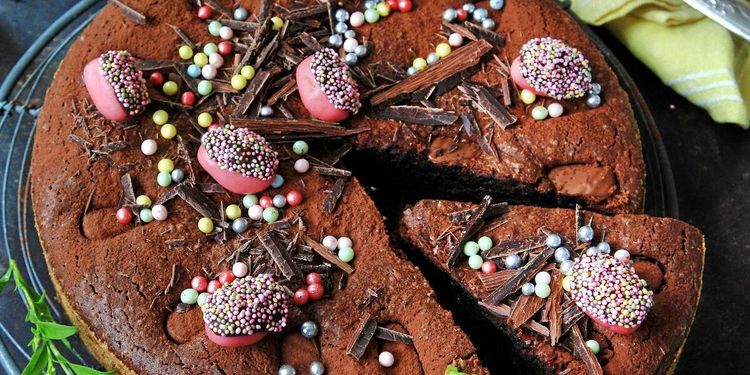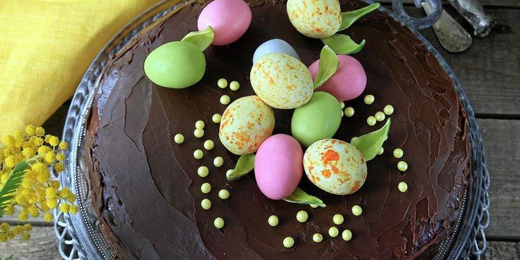 Baka en gudomligt god kladdkaka fylld med chokladfyllda godisägg i påsk