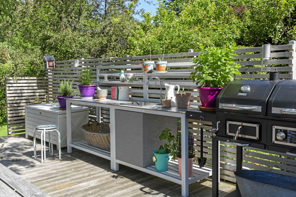 • Inred med kryddor och krukväxter. Att ösa på med kryddor och krukväxter gör uteköket inbjudande. Dessutom är det smidigt att kunna knipsa av några blad när man fixar maten.