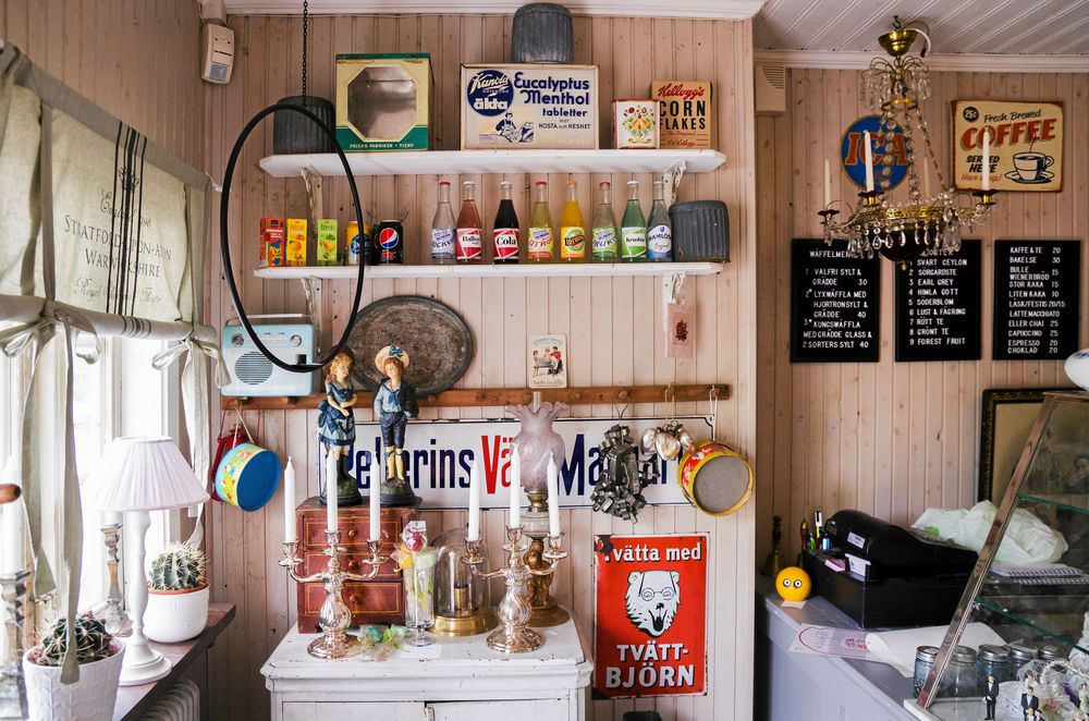 Caféet kom egentligen till av en slump. När de hade renoverat färdigt det slitna huset flyttade Thomas hit sin antikaffär från Trelleborg. De började servera lite kaffe och bullar i anslutning till butiken.