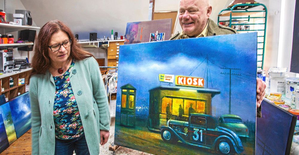 Ronny är dalkarlen som hittat till Skåne. Han har länge målat landskap, men är nu inne på mer nostalgiska målningar med gamla bilar. När han inte bygger något förstås, för Ronny är ständigt igång och skapar något av upphittade prylar, skräp och färg