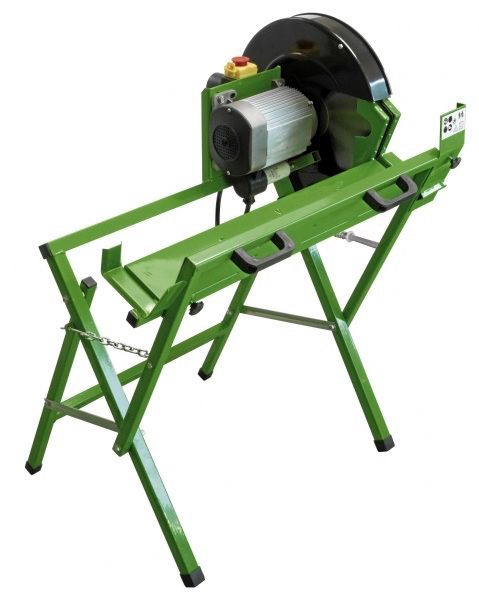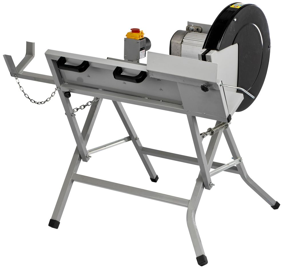 Säker och lätthanterlig med sågning i förutbestämda längder genom en steglös indikator. Vändbara stift gör att man kan ändra riktning på klingan om strömuttaget är kopplat så att den går åt fel håll. Transporthjul för enkel förflyttning.