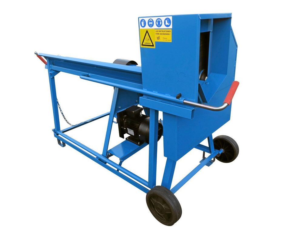 Effektiv för stockar med diameter upp till 15 cm (max diameter 17 centimeter). Lätt och enkel att hantera. Bara två hjul gör att maskinen har lätt att stå stadigt.