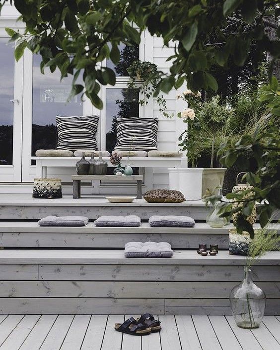 Sitta, ligga, äta, fika, sola. Trappor är fantastiskt användbara. Ett par nivåer kan räcka för att få till det rätta trapphänget där man bara vill slå sig ner och njuta. Med trappsteg som går att öppna som lock kan trappan även fungera som rymlig förvaring. Källa