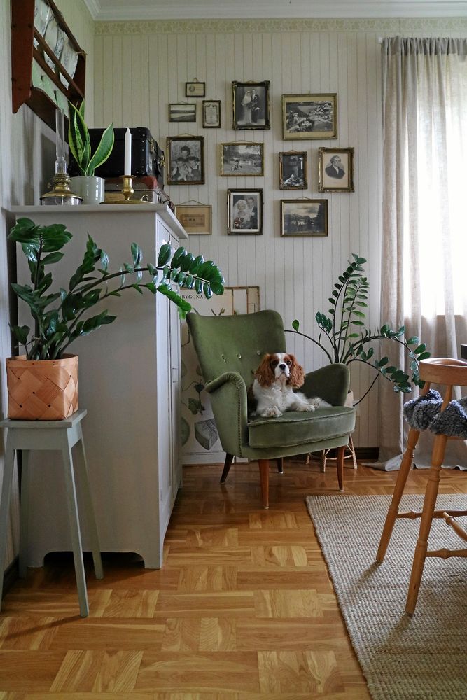 – Ja, antikgrön gillar jag jättemycket. Jag har den färgen på knopplisterna i hallen till exempel och på flera stolar i matsalen, säger hon.