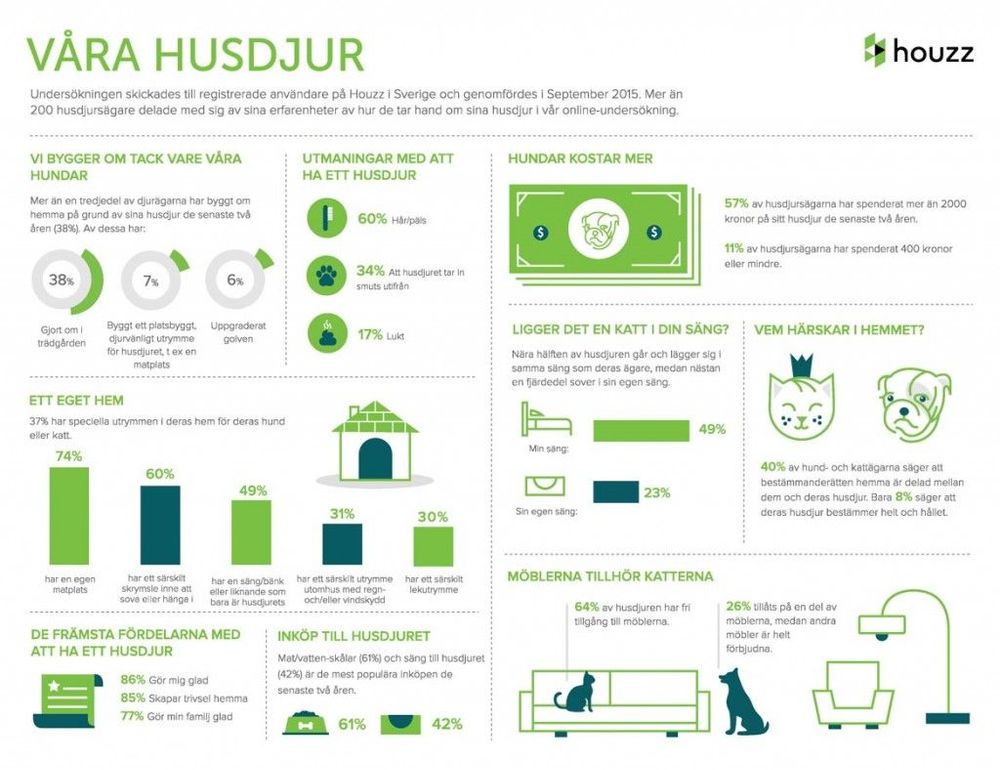 Husdjurens inflytande visas också genom att nära hälften av svenskarna sover med sina husdjur och 64 procent låter husdjuren ha fri tillgång till husets inredning.