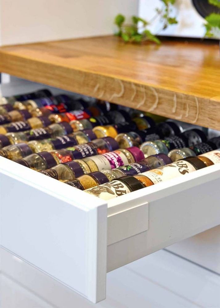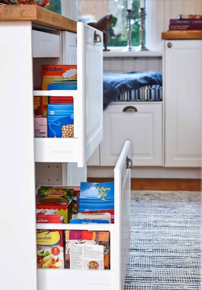 5. Skafferiet ryms i utdragbara lådor som ger en tydlig översikt av innehållet. I översta lådan ryms också en hemlig liten låda i lådan (den är stängd på bilden). Smart.