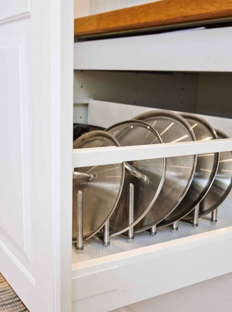 6. Nu behöver kastrullocken inte ramla ut varje gång man öppnar kastrullskåpet. I lådan får man plats med både lock och kastruller.