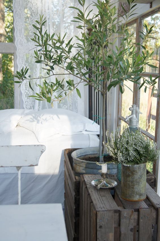 Ett inomhusträd ger sovrummet lugn. Byt ut ljung mot blåbärsris så blir det det vår direkt. Bilden kommer från Butik Norregård.