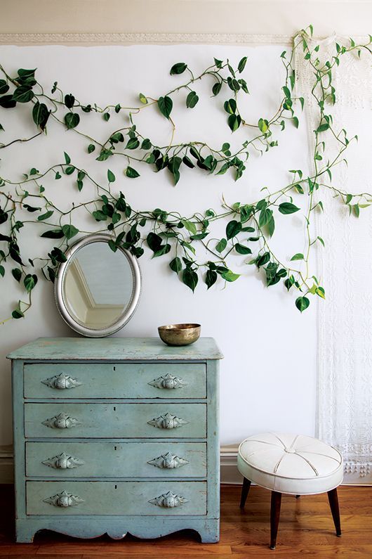Det kan räcka med ett par grönskande inslag i rummet för att skapa skön vårkänsla. Mixa gärna med växter som har olika form och färg på bladen. Källa