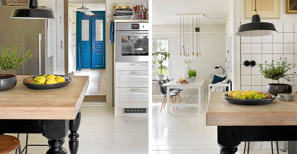 Hon och Jeppe ritade själva en öppen och modern planlösning för bottenvåningen, där två väggar revs för bättre arbetsytor i köket och större ljusinsläpp från fönstren.