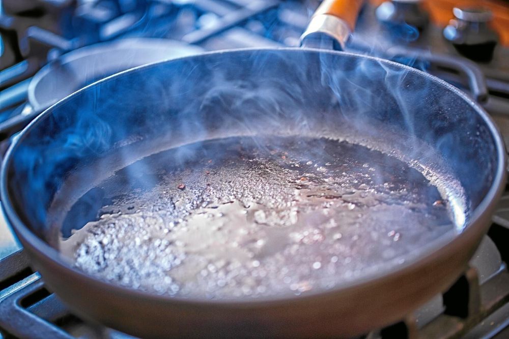 Gamla inbrända rester kan fastna både i och runt pannan. I riktigt hög värme kommer de förkolna och släppa greppet.