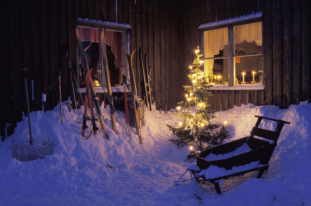 I norra Sverige är det vanligt att man skottar upp snön mot husgrunden. Varje kåk får en glittrande vit polokrage.