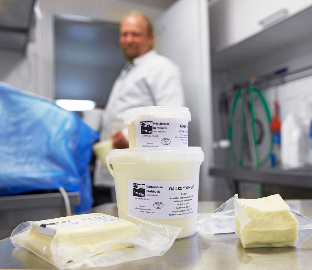 – Korna ger mellan 55 och 60 liter om dagen. Vi gör yoghurt, filmjölk, salladsost och stekost, berättar han.
