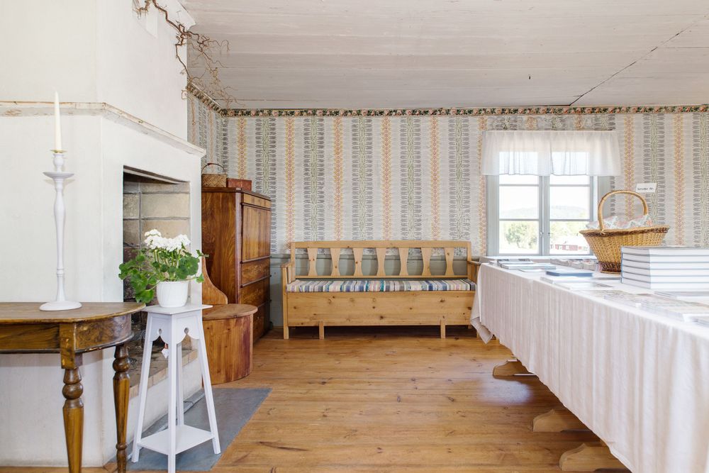 – Den yttre miljön är skyddad och det gäller åtminstone det äldsta husets herrstuga där tapeten Gästgivars finns, säger Tomas Lusth.