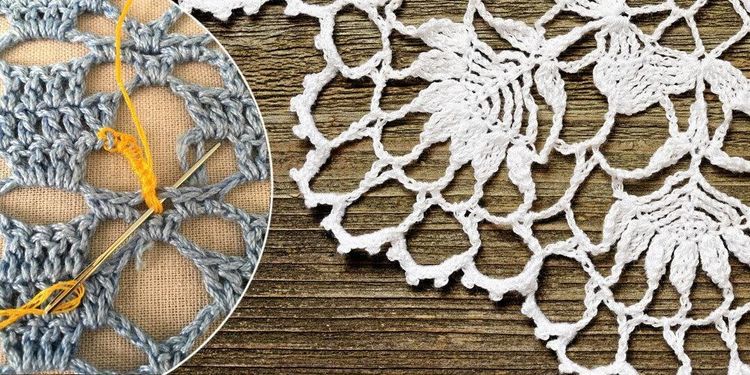 Ett hål mitt i finaste, virkade duken går att laga. Så här låter du nål och träd härma den virkade strukturen så att det nästan inte syns.
