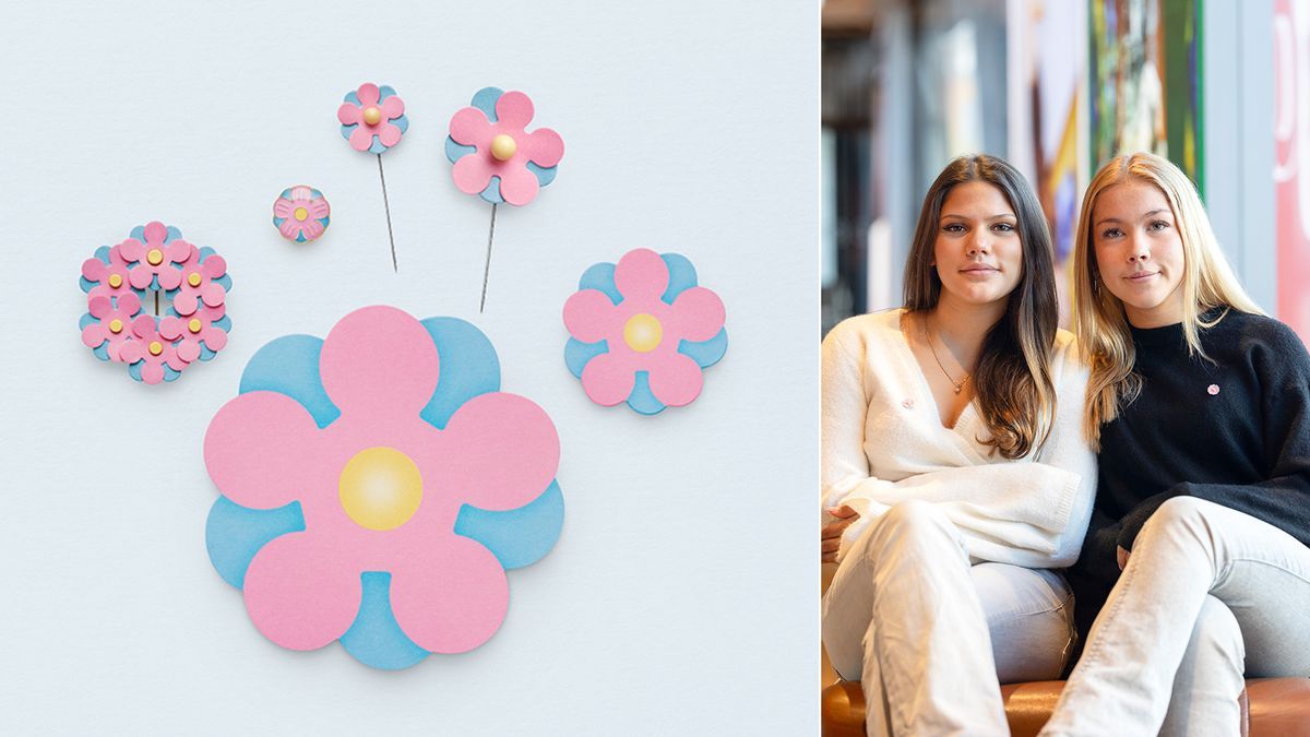 För första gången i majblommans historia har årets version gjorts av en duo, skolkamraterna Leia Sandell och Saga Laventzakis från Järfälla, nordväst om Stockholm. De kallar sin pastellblå och pastellrosa skapelse för ”Gladare vardag”.