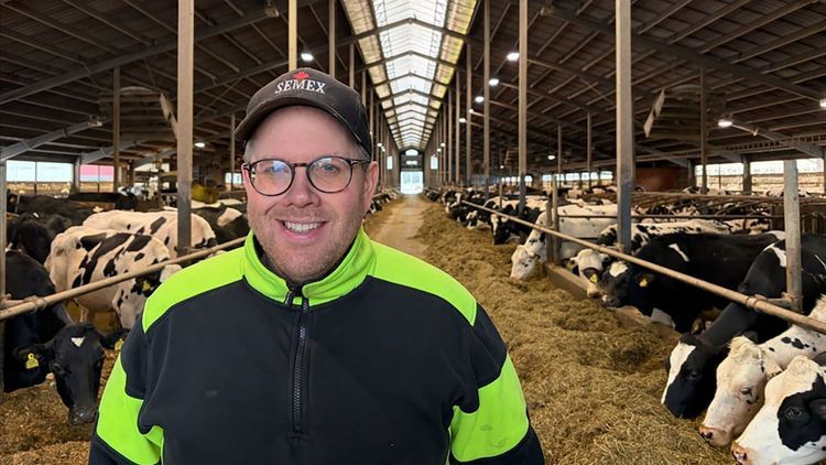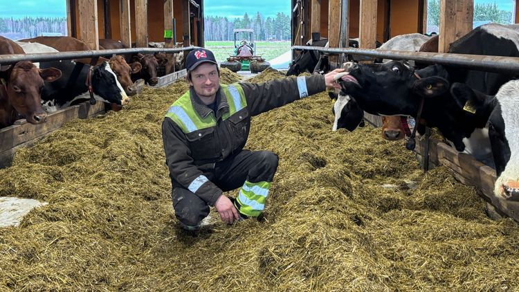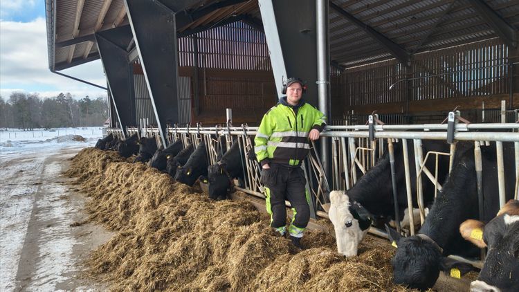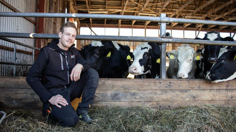 Alvinn Axelsson, 25 år, tog över mjölkproduktionen i ett generationsskifte i våras.