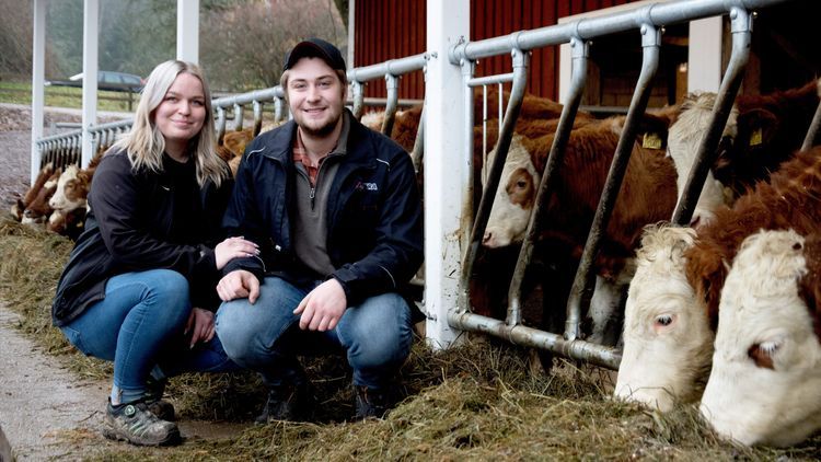 Unga paret Elias Gustavsson och Nora Pilåsen tror på nötköttsproduktionen och drömmer om att bygga lösdrift till dikobesättningen.