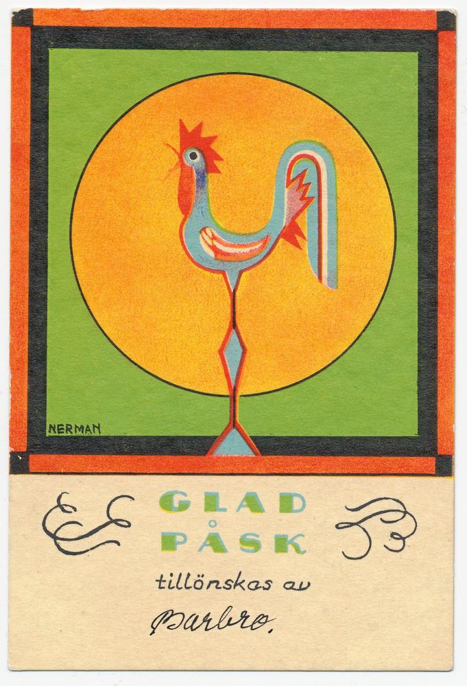 Rena linjer och former på påskkortet från 1955 av konstnären och tecknaren Einar Nerman (1888–1983).Foto: Postmuseums arkiv
