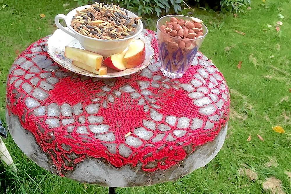 2. Gjuten betongfågelmatare