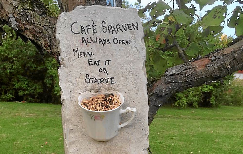 Caroline Strömberg i Bjästa, har hittat på en enkel och smart fågelmatare.