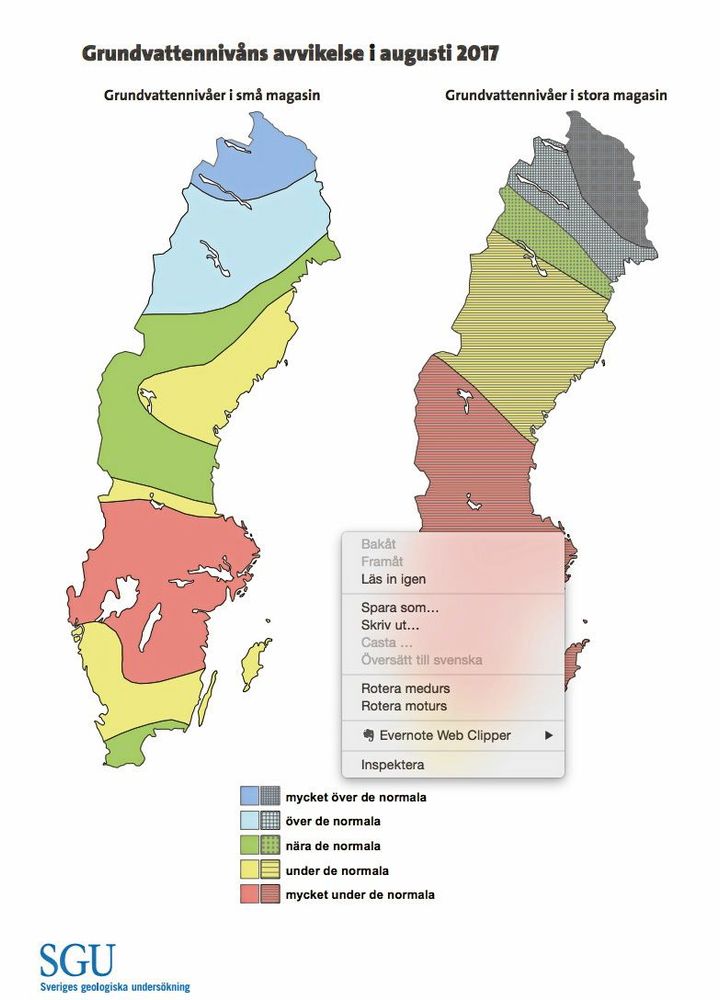 Nivåerna i båda typerna av magasin är under eller mycket under de normala i större delen av landet. Men för de små magasinen har Skåne, Blekinge samt delar av Norrland nivåer nära de normala.